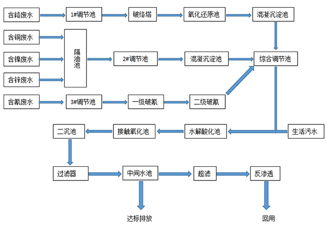 通過酸堿中和反應,調節(jié)電鍍廢水的酸堿度,使其呈中性或接近中性或適宜下步處理的酸堿度范圍,主要用來處理電鍍廠的酸洗廢水。