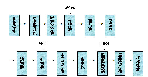 酚氰廢水(蒸氨廢水和其它生產(chǎn)廢水的混合廢水)經(jīng)蒸氨后壓送至本處理站,在生產(chǎn)工藝事故或前級(蒸氨)處理事故狀態(tài)下,酚氰廢水直接排入本處理站特別設(shè)置的事故廢水池。進入事故廢水池的廢水將在其后的廢水處理過程中逐步處理和消化。事故廢水池通常處于非工作狀態(tài),一般只是在事故廢水排入時啟用,在調(diào)試期間(此階段處理能力較低)或原污水水量變化較大時也可以用以收集部分廢水,以減少外排量或降低對后續(xù)工藝的沖擊。