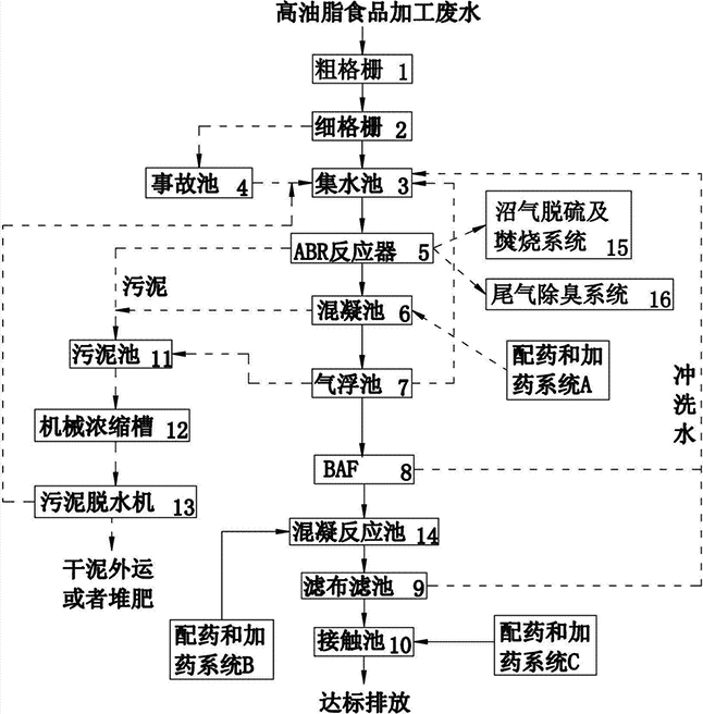 本工藝生化處理采用AB法,通過吸附、絮凝、分解和沉淀等作用,以較低的能耗取得較高的處理效率,獲得良好的出水水質(zhì)。