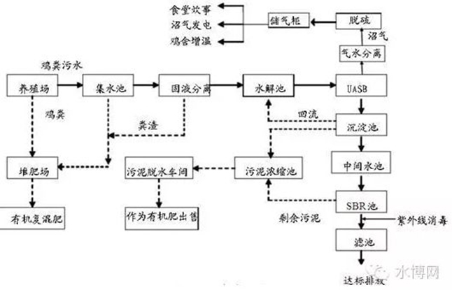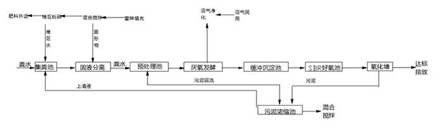根據(jù)畜牧養(yǎng)殖場(chǎng)污水水質(zhì)特性及排水狀況(水沖糞工藝),在污水處理工藝前端要設(shè)置初沉池,以利糞便與污水初步分離,減少污水處理量。分離后的糞便和人工清除的糞便作堆積發(fā)酵處理后,加工成為有機(jī)肥出售或另作他用。